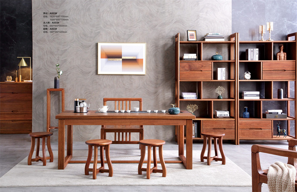 江西安德稳家具南美胡桃木茶桌:指尖轻抚的年轮,沉淀时光的诗意江西安德稳家具南美胡桃木茶桌:指尖轻抚的年轮,沉淀时光的诗意在快节奏的现代生活中,一方茶桌不仅是承载茶器的容器,更是连接人与自然、过去与当下的诗意媒介。南美胡桃木茶桌,以其独特的纹理、温润的触感与时光沉淀的韵味,成为茶室中不可或缺的灵魂之物。它不仅是家具,更是一段被岁月雕琢的故事,一方承载文化记忆的天地。 一、年轮的低语:自然与时间的交响南美胡桃木,源自南美洲的密林深处,其生长周期漫长,需数十年甚至上百年的沉淀才能成材。每一圈年轮,都是树木与自然对话的印记——春日的蓬勃、夏日的繁茂、秋日的沉淀、冬日的沉寂,都在木纹中留下深浅不一的痕迹。当指尖轻抚茶桌表面,那凹凸有致的纹理仿佛在诉说着森林的呼吸与季节的更迭。 这种木材的独特之处在于其“活”的特性。未加工的原木会随着环境湿度变化而微调含水率,制成家具后仍保留着自然的呼吸感。茶桌表面经过精细打磨后,触感如丝绸般柔滑,而内部木纤维的微孔结构又能调节茶具的温湿度,让紫砂壶在自然环境中缓慢“养”出包浆。这种与自然的共生关系,让茶桌成为连接人与自然的桥梁。 二、匠心的温度:传统工艺与现代美学的融合一张优质的南美胡桃木茶桌,需经历选材、设计、雕刻、打磨、上漆等数十道工序。匠人需根据木材的纹理走向设计桌脚与桌面的衔接,让年轮成为天然的装饰元素。在雕刻环节,传统榫卯工艺与现代数控技术相结合,既保证了结构的稳固性,又保留了手工的灵动感。 上漆是赋予茶桌灵魂的关键步骤。采用环保木蜡油涂装,既能凸显木材的天然纹理,又不会掩盖其温润的触感。漆面经过反复打磨后,呈现出“润而不腻”的光泽,仿佛被时光浸润过的玉石。这种工艺不仅让茶桌经久耐用,更使其成为一件可传世的艺术品。 三、茶席上的诗意:空间与文化的对话在南美胡桃木茶桌上,每一件茶具的摆放都暗含文化密码。茶壶居中,象征“天地人”的和谐;茶杯环绕,寓意“和敬清寂”的茶道精神;茶宠点缀,增添空间的灵动与趣味。这种布局不仅符合人体工学,更营造出一种“移步换景”的视觉层次。 茶桌的尺寸设计也颇有讲究。单人茶桌长约80厘米,适合独处时的静思;双人茶桌宽约1.2米,方便主客交流;多人茶桌则采用扇形或圆形设计,打破传统对称格局,营造出围炉夜话的温馨氛围。当茶香氤氲,木纹在灯光下泛出琥珀色的光泽,整个空间便成为一幅流动的山水画。